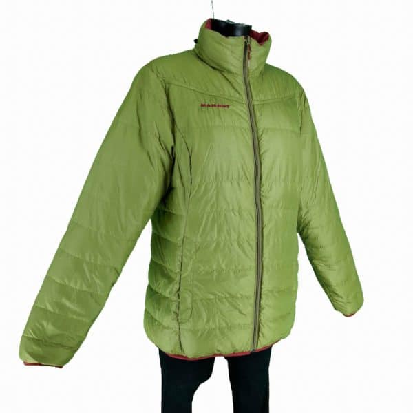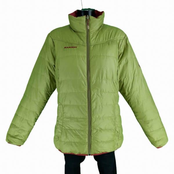 Originalna ženska jakna Mammut u odličnom stanju (pogledajte slike). Sa dva lica, crvenkaste i zelene boje, kvalitetno punjenje od 90% pačijeg paperja i 10% pačijeg perja, topla. Nedostaje etiketa s veličinom, obratiti pažnju na mere u opisu.