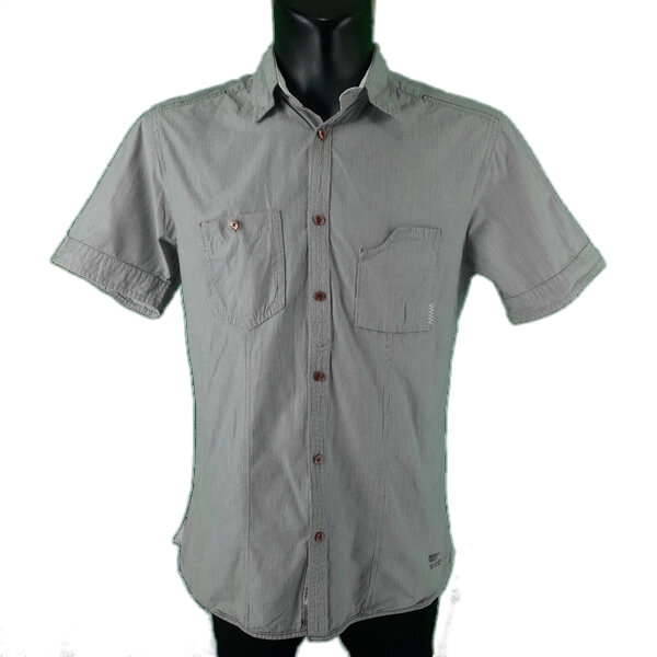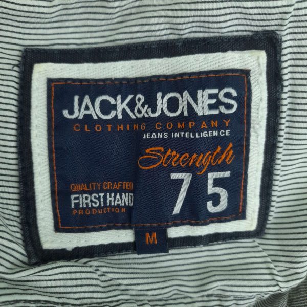 Originalna muška košulja Jack & Jones u odličnom stanju (pogledajte slike). Sivo-bele boje, sitan prugast dezen, pamučna. Malo žuta kragna iznutra, rešava se pranjem.