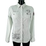 Originalna ženska košulja La Martina u odličnom stanju (pogledajte slike). Bele boje, pamučna, rastegljiva zbog udela elastina u tkanju, polukružno sečena na dnu. Uži model, iako je veličina M, odgovarala bi i ženama koje nose S veličinu-pogledati mere u opisu.