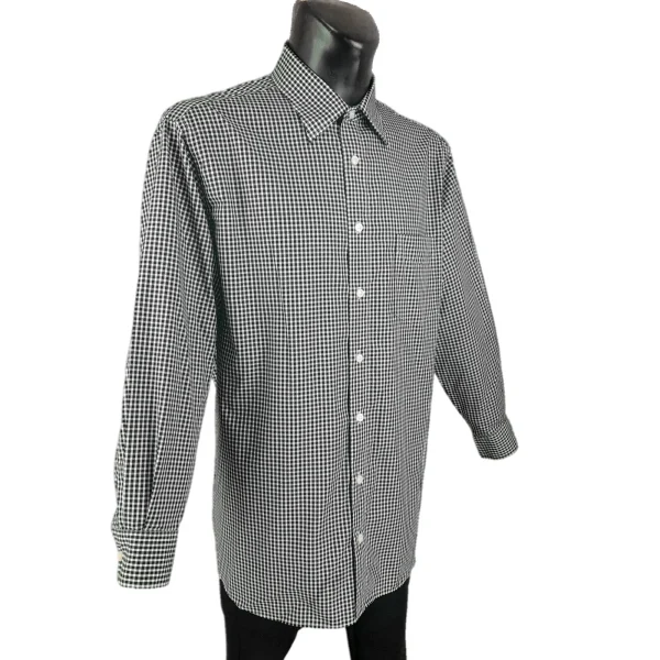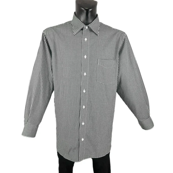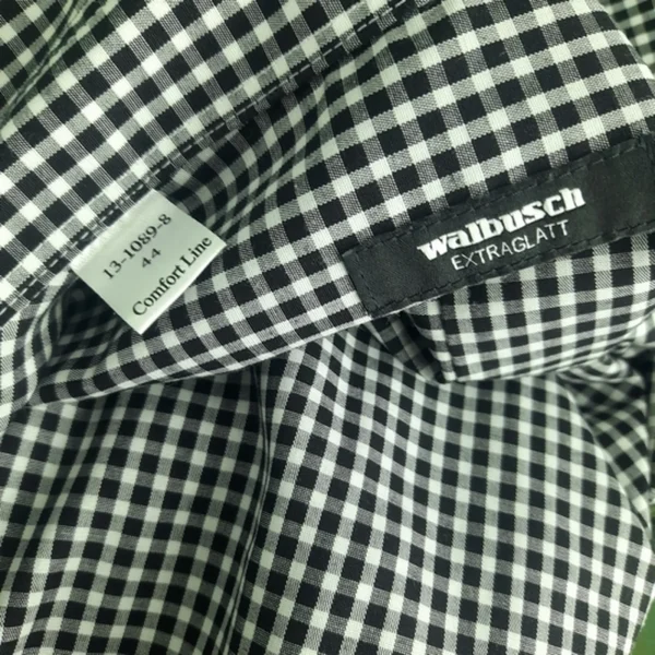 Muška košulja Walbusch u odličnom stanju, kao nova (pogledajte slike). Crno-bele boje, sitan kariran dezen, pamučna, polukružno sečena na dnu. Ravan model.
