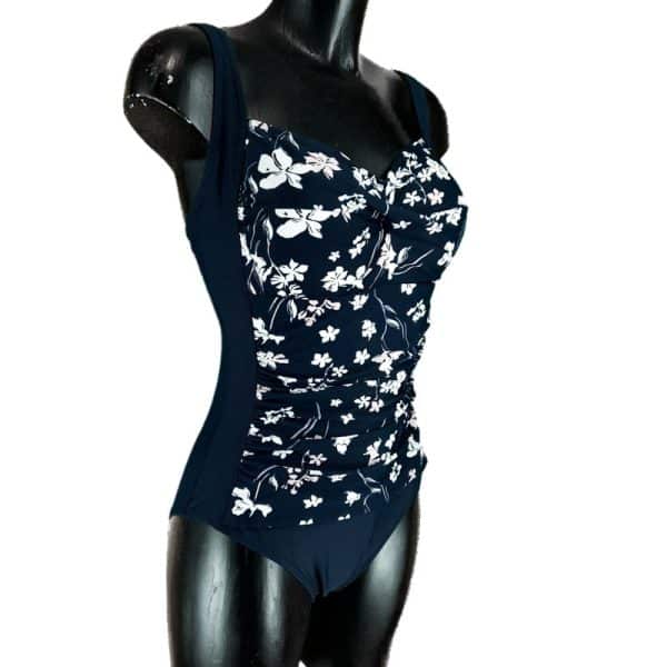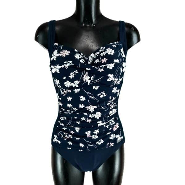 Originalan ženski kupaći Lascana u odličnom stanju, kao nov (pogledajte slike). Teget boje, cvetan dezen, jednodelan, sa podesivim bretelama, ojačanja u predelu korpi.
