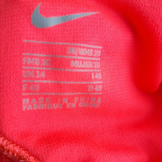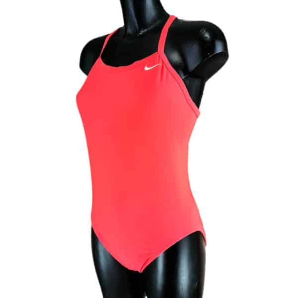 Originalan ženski kupaći Nike u odličnom stanju (pogledajte slike). Jarke roze-narandžaste boje, jednodelan, sportski. Tragovi nošenja u vidu izvučenih petljica na prednjoj strani, kod desne bretele.