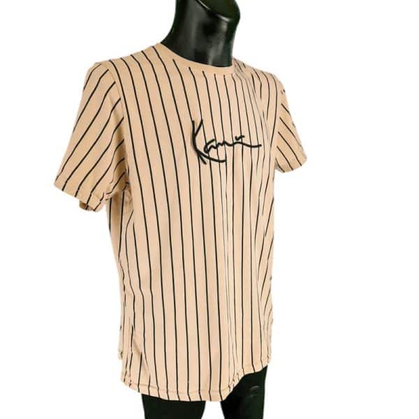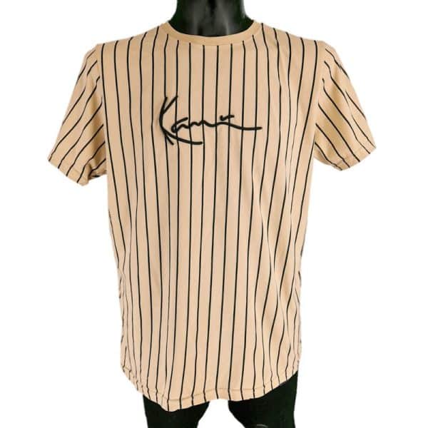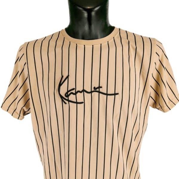 Muška majica Karl Kani u odličnom stanju (pogledajte slike). Drap boje, prugast dezen, ovalan izrez, pamučna.