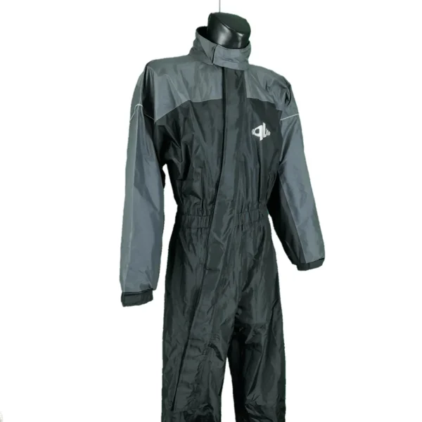 Moto muški kombinezon u odličnom stanju (pogledajte slike). Crna boja. Kišni, za sezonu proleće-leto. Elastična guma u struku, kosi rajsferšlus. Gume na dnu nogavica, rupičasta postava. Preporuka!