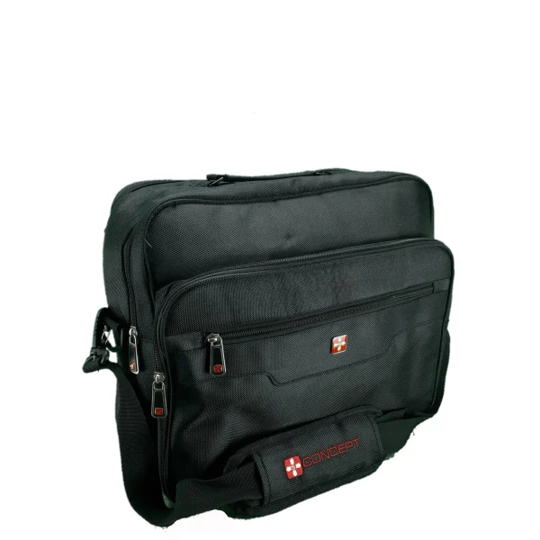Originalna torba Concept u odličnom stanju, kao nova (pogledajte slike). Crne boje, pravougaona torba čvršće strukture. Veoma prostran glavni odeljak sa unutrašnjom pregradom koja omogućava odvajanje laptopa od ostatka stvari (dokumenata, knjiga). Torba ima široki, podesivi kaiš od izdržljive gurtne sa mekanim jastučićem za rame, a poseduje i horizontalnu traku (smart sleeve) koja omogućava da se torba sigurno navuče na ručku kofera. Idealna je za nošenje laptopa, dokumenata i kancelarijskog pribora.